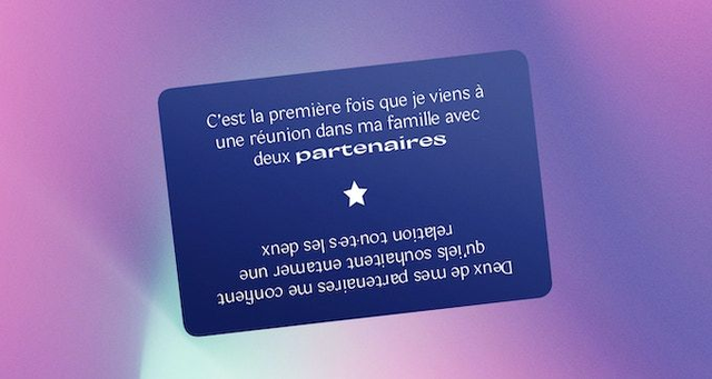 Le mode de jeu est très simple, seul·e ou à plusieurs, avec des proches ou des inconnu·e·s, tu pioches une carte et choisis une situation ou une thématique qui servira ensuite de base à la discussion.